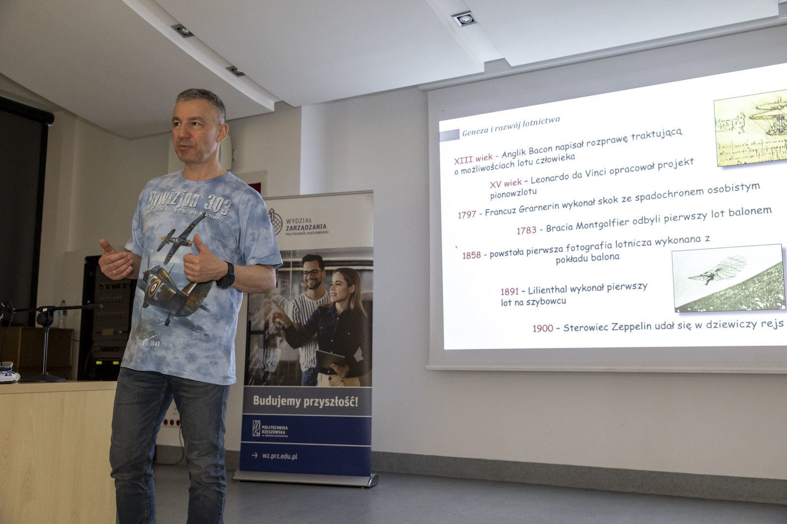 Wydarzeniem, które dawało możliwość poznania kandydatom codzienności akademickiej był wykład otwarty przeprowadzony przez dr. hab. inż. Grzegorza ROSŁANA, prof. PRz, na temat: Zarządzanie bezpieczeństwem w lotnictwie komunikacyjnym.